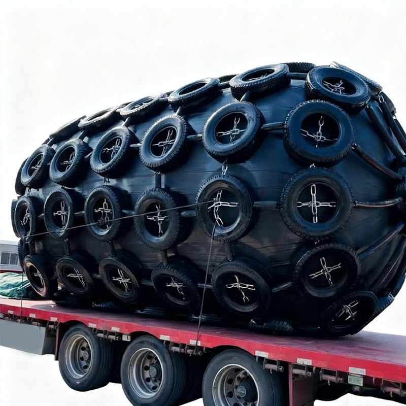Each fender is fitted with a heavy-duty chain and tire net to resist abrasion and impact. The modular design allows quick replacement of worn tires without disassembly.